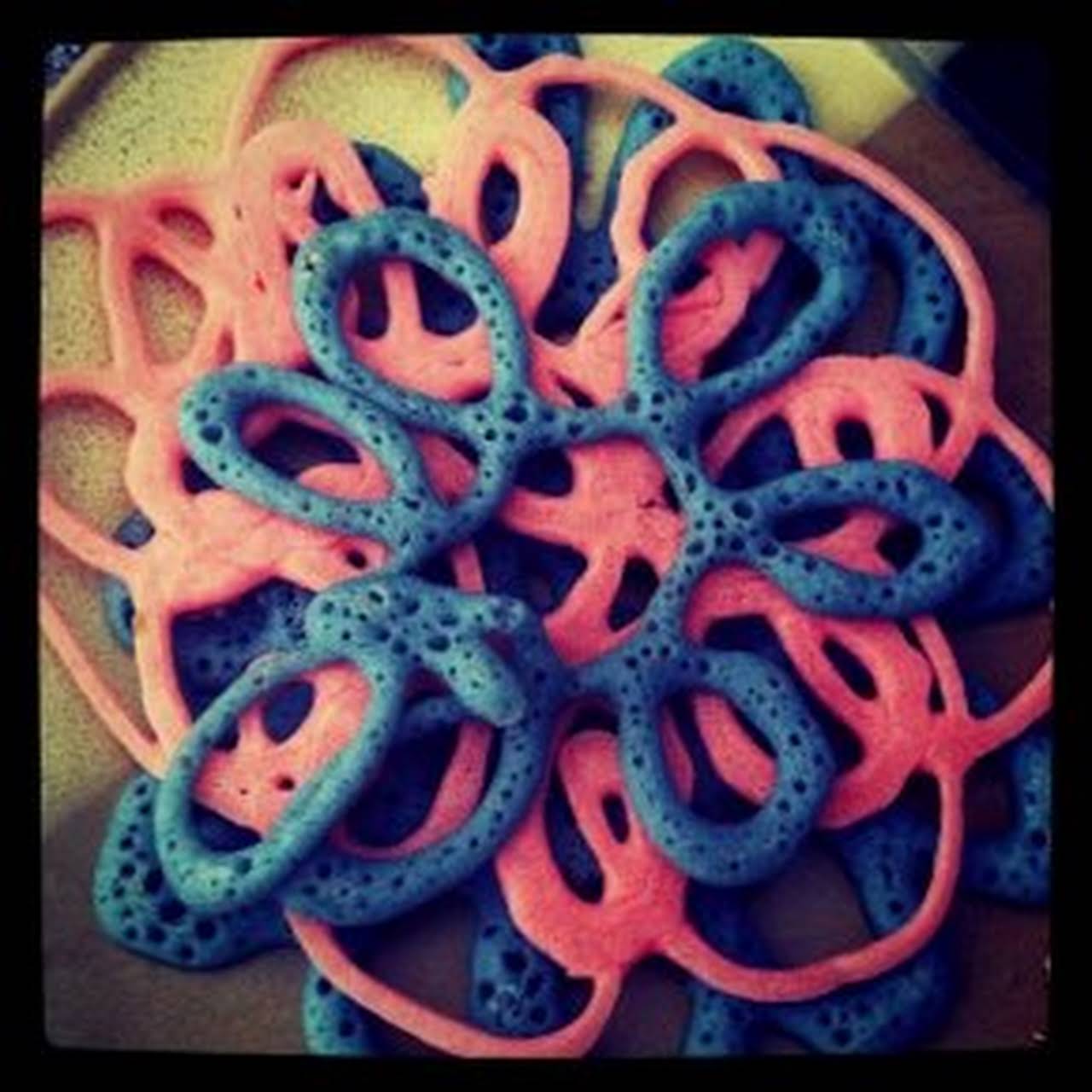 Squeeze Bottle Pancakes subsequently All endeavor Flour, Baking Powder, Sugar, Salt, Large Eggs, gather together Milk, Melted Butter, Food Coloring